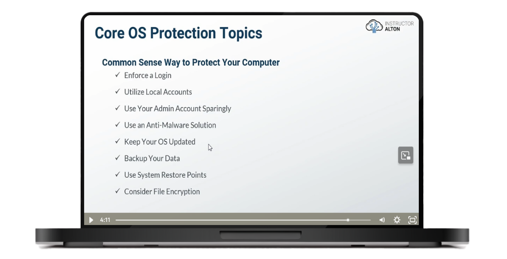 - OS Protection Fundamentals: Understand the core principles of operating system security, defense in depth, and the CIA Triad as applied to desktop computing.