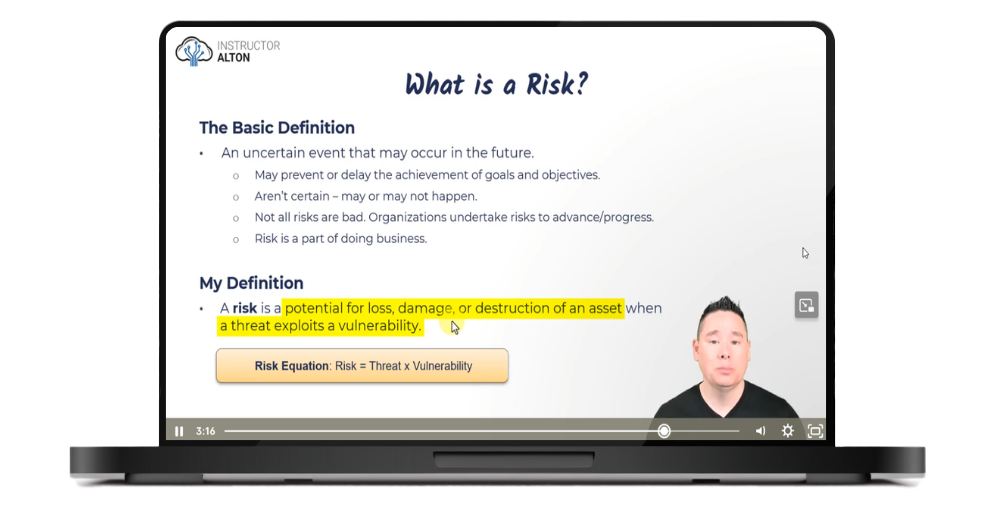 Alton is the founder of Alton Teaches LLC and a former college professor. He spent 12 years as a cybersecurity specialist at the U.S. Department of the Treasury, working in governance, risk, and compliance, where risk management was a daily responsibility. He holds an MBA in Information Assurance and Security Management and multiple certifications, including CISSP, Security+, and Network+.